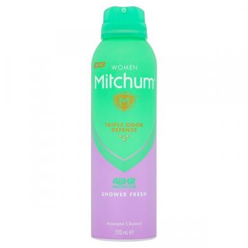 Mitchum Women Shower Fresh Deodorant 200ml is a Triple Odor Defense 48HR Protection Anti-Perspirant & Deodorant Aerosol. Expertly formulated for ultra-powerful 48 hour sweat + odor protection, so you can feel your most confident. Provides a shield against odour from heat, motion and stress. Dermatologist tested. Alcohol free.